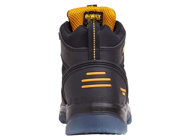The DEWALT Nickel S3 Black Safety Boots have a full grain leather and canvas uppers. With a waterproof and breathable Samsung membrane inner lining and PU comfort insoles for dry, comfortable all day wear. The padded tongue and collar provide increased comfort.