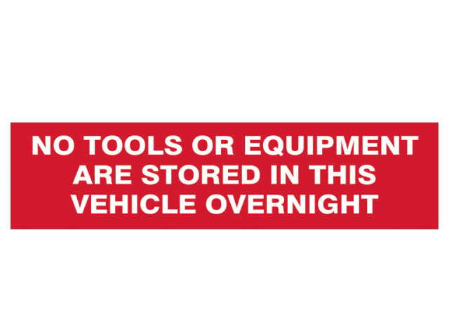 No Tools Or Equipment Stored In This Vehicle Overnight – SAV/CLG 200 x 50mm SCA5256