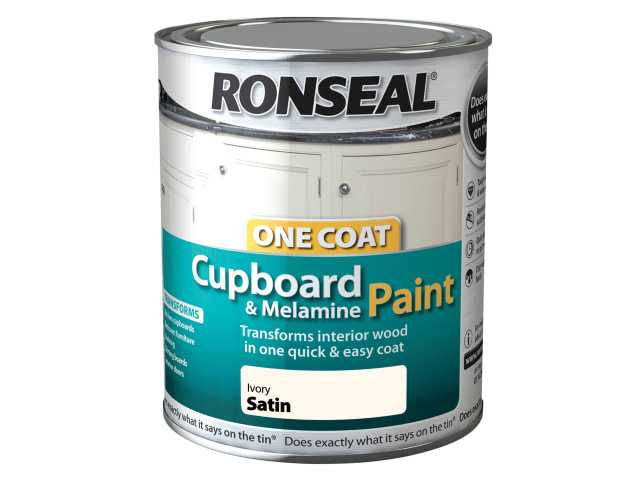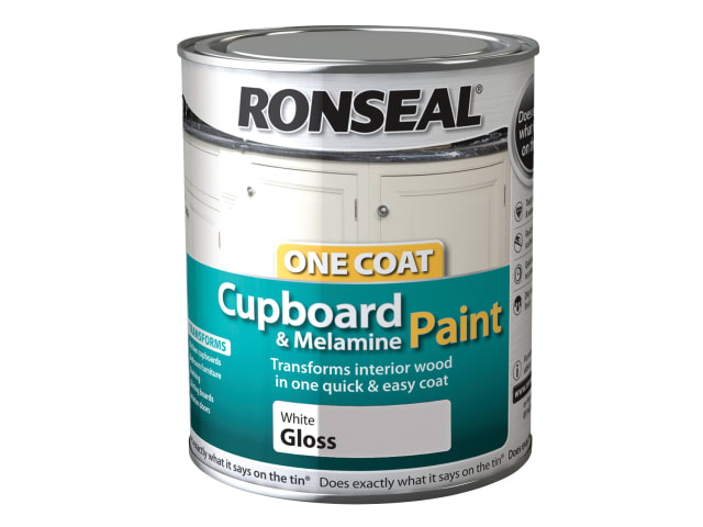 Ronseal One Coat Cupboard & Melamine Paint transforms cupboards with one coat, eliminating the need for a primer. Great for kitchen cupboards and bedroom furniture. It won’t leave brush marks, scuff or scratch. Touch dry in only 2 hours.