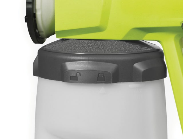 The Ryobi P620 ONE+ 18V Speed Paint Sprayer is compatible with any brand of paint, and with its innovative and patented delivery system, minimises the need for dilution. The sprayer’s flexible intake tube lets you spray at any angle and use the last remaining paint in the container minimising wastage.