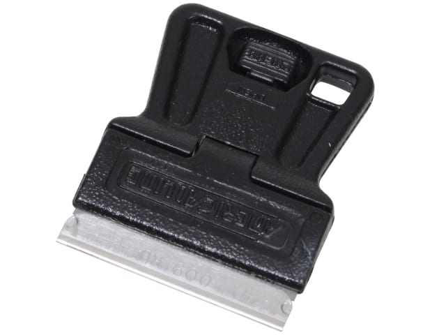 American Line 660123 mini-scraper with a contoured grip. Is ideal tool for scraping or cleaning hard surfaces, removing labels, spills, paint, hob and oven cleaning etc. It comes carded with a single blade which reverses for storage.