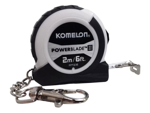 The Komelon PowerBlade™ II Pocket Key Ring Tape is small enough to fit in your pocket or purse, but big enough to handle your measuring needs. It has a durable ABS plastic case, a sturdy nylon coated steel blade with metric graduations and secure slide lock. Fitted with a quick-release clasp, for attaching to your keys or belt loop.