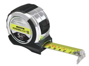 The Komelon PowerBlade™ II Pocket Tape has a Dura NY nylon coated steel dual printed blade with vertical blade markings on the reverse and patented hi-vis blade printing. The Dura NY nylon coating offers superior quality that lasts up to 15x longer.