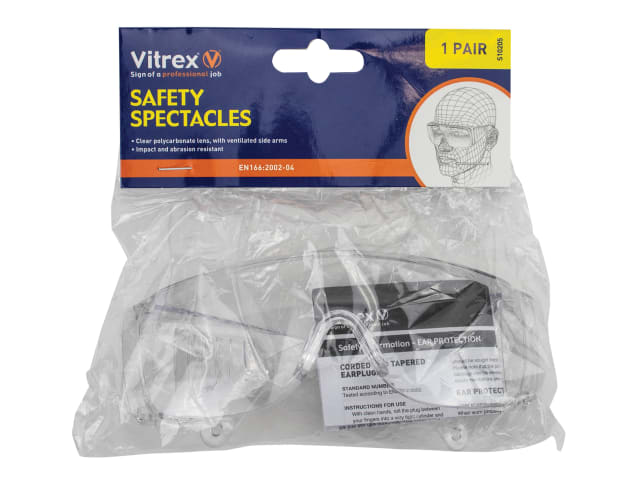 These Vitrex Premium Safety Spectacles have a stylish design with clear polycarbonate lenses and ventilated side arms. For the ultimate level of protection, style and comfort.