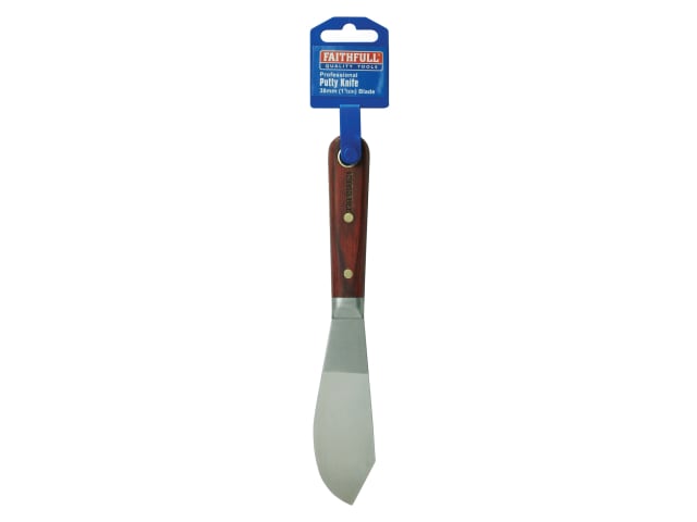 Faithfull Professional Putty Knife with a corrosion resistant stainless steel blade for long life. The blade is attached to a hardwood handle with brass rivets and its tang runs through the full length of the handle for added strength.