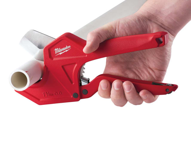 The Milwaukee Hand Tools Ratcheting PVC Cutter has a max. 42mm cutting capacity in tube and pipe.