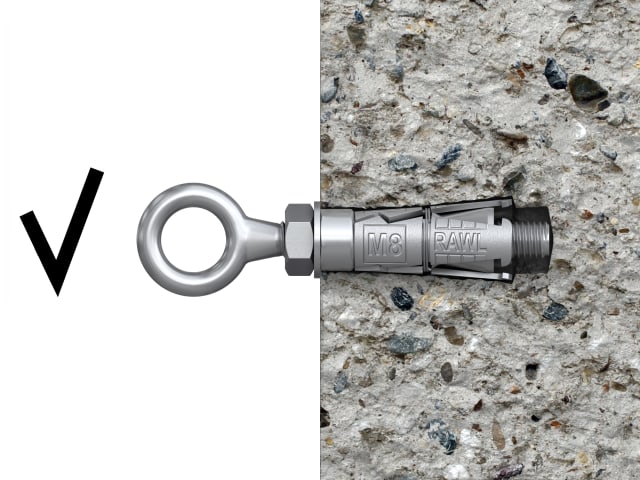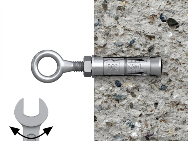 The Rawlplug Rawlbolt® Eye Bolt has been designed and manufactured for maximum performance. With pressed steel segments for consistent dimensional accuracy and a forged eye for strength and safety in use. Suitable for securing guy ropes, stays, cables etc.
