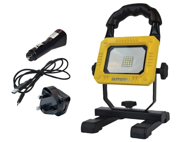 The Faithfull Power Plus Rechargeable SMD LED Work Light has been developed and designed primarily for tradesmen to use on the worksite or inside where there may be poor lighting, or no lighting at all. One of its biggest benefits is that it is compact and can be easily stored during transit, and won’t get in the way during use.