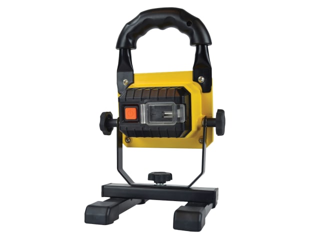 Using the latest SMD LED technology, this is a robust and extremely powerful 10W portable light which provides users with an incredibly bright, glare-free light. It offers 3 output modes for versatility and extended running times. Choose from 100%, 50% and 25%, providing 900, 450, or 225 lumens of light. Unlike many traditional site lights, this one does not emit heat, so the glass is cool to the touch. That’s not only a great safety feature, it’s also a massive benefit to tradesmen such as plasterers where the heat from traditional lights can dry out the plaster too quickly and crack it.