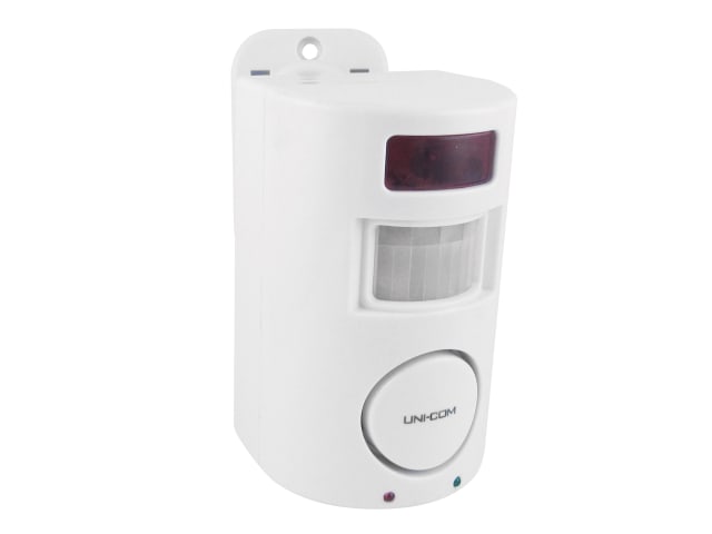 The Uni-Com Remote Control PIR Sensor Alarm offers a quick and simple way to help protect your home from burglars. When armed the loud 96 dBA siren sounds when movement is detected. The alarm can be quickly and easily armed/disarmed using the supplied remotes.
