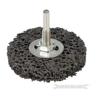 Silicon carbide-coated nylon mesh and alloy arbor for rust and paint removal, descaling, deburring and preparation of welding seams and graffiti removal