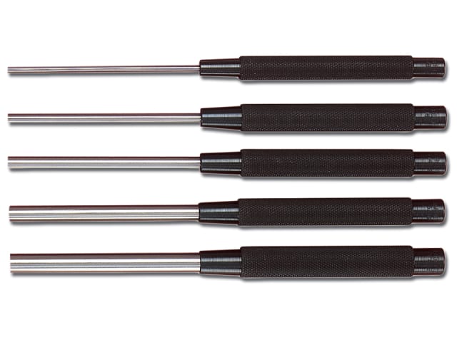 Extra long pin punch. Hardened and tempered with a knurled grip. The drive pin sections are 90mm (3.1/2in) long and the diameters of the punches are slightly under the sizes listed.