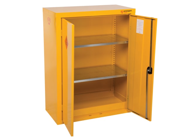The Armorgard SafeStor™ Hazardous Floor Cupboard is designed to be used internally for the safe storage of flammables and chemicals, such as paint and other hazardous substances as defined by COSHH guidelines. Built to a 30 minute fire resistance.