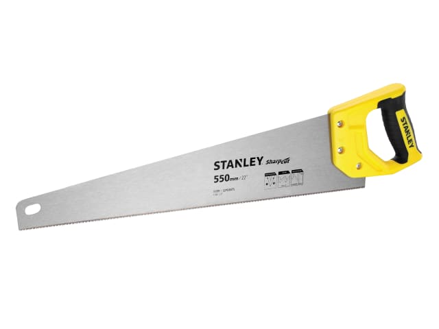 The Stanley Sharpcut™ Handsaw is a heavy-duty saw with hardened teeth ground on 3 edges for faster, easier cutting and a longer working life.
