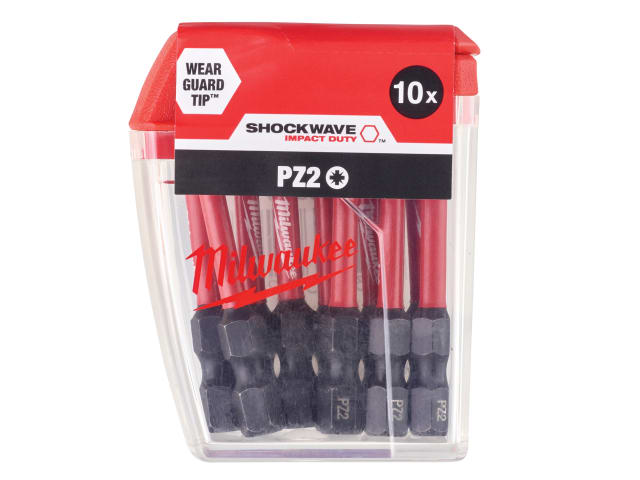 1 x Pack of 10 Milwaukee SHOCKWAVE™ Impact Duty Bits PZ2 x 50mm.