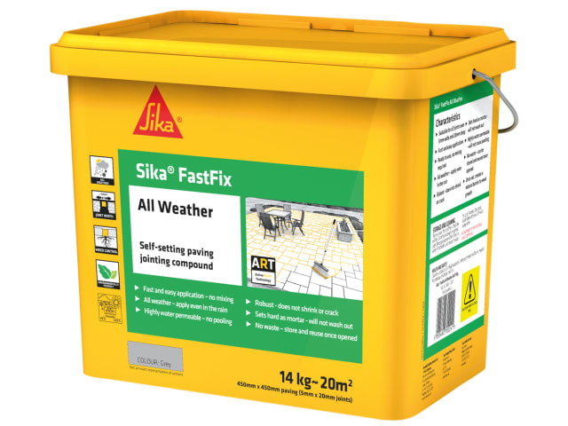 Sika® FastFix All Weather is a self-setting paving jointing compound that provides perfect pointing on paving, paths and patios. It has a unique formula that contains Active Resin Technology for advanced durability. It is ready to use with no mixing required, easy to apply in all weather conditions (even in the rain) and won’t shrink or crack over time.