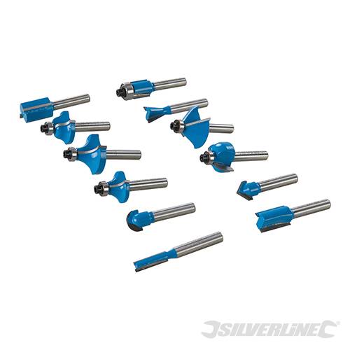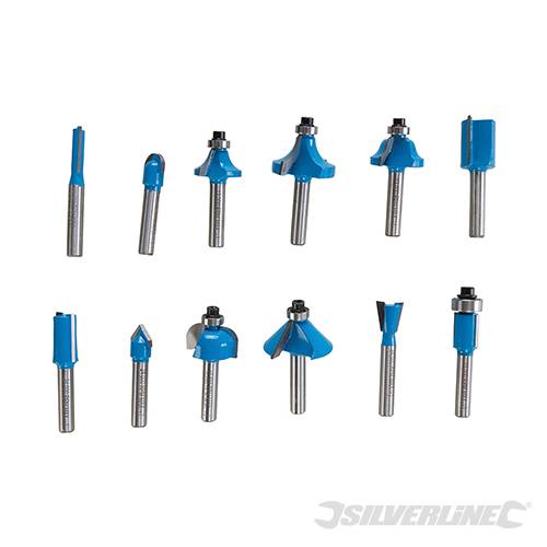 Includes: Straight: 6 x 20mm, 12 x 20mm, 16 x 20mm; 90° grooving: 12.7mm; 45° Dovetail: 12.7mm; 45° chamfer: 32mm; Bearing flush trim: 12.7 x 13mm; Rounding over: R6.3 D22.2mm, R9.5 D28.6mm; Cove box: R6.3 D12.7mm; Cove: R6.3 D22.2mm; Roman ogee: R4 D25.5mm