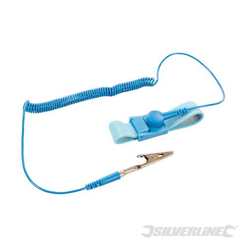 Adjustable wrist strap assembly with banana plug and alligator clip tip. Prevents build up of static electricity in dry environments. Protects computers and sensitive electronic equipment from static damage. 360° conductive contact. One size fits all.