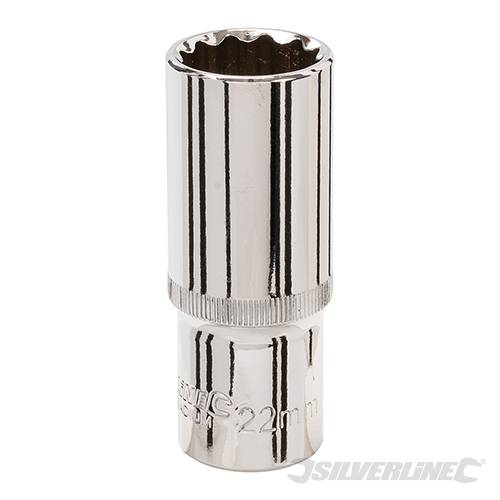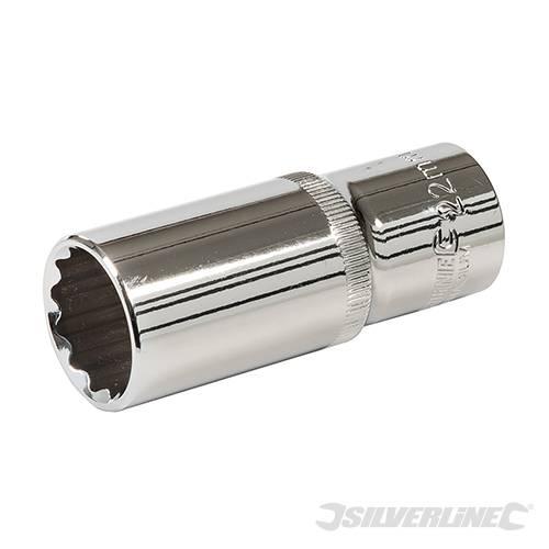 Deep 12-point bi-hex socket for fast, accurate location to the fastener. Precision cold-forged, hardened and tempered chrome vanadium steel. Fully polished and nickel chrome plated for durable corrosion resistance. Chamfered ends and thin walls for positive location on fastener. Knurled ring provides grip and control in the hand, and bearing hole provides solid connection to the tool.