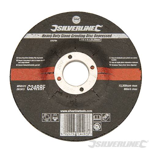 Silverline Heavy Duty Stone Grinding Disc Depressed 115 x 6 x 22.23mm 275794 – Power Tools – Silverline