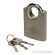 Protective chrome-plated, brass ring in base and chrome-plated, hardened, double-locking, shrouded shackle