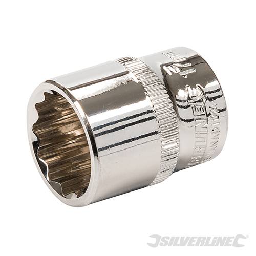 12-point bi-hex socket for maximum torque transfer to the face of the fastener. Precision cold-forged, hardened and tempered chrome vanadium steel. Fully polished and nickel chrome-plated for durable corrosion resistance. Chamfered ends and thin walls for positive location on fastener. Contents: 8, 10, 11, 12, 13, 14, 15, 17 and 19mm.