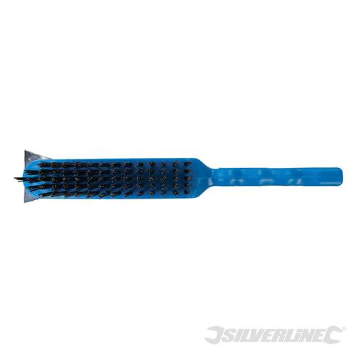 Heavy duty steel wire brush with stay-clean, tough plastic handles