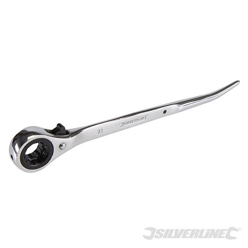 Hardened and tempered bi-hex socket with 2-way ratchet action. Tapered drop-forged handle for quick easy alignment of bolt holes.
