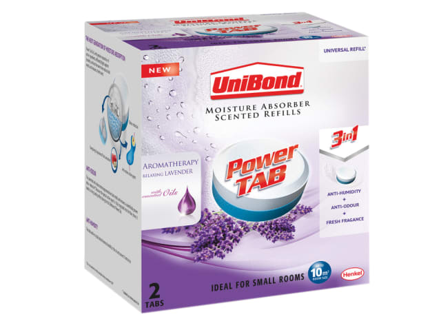 Unibond Power Tab refills use innovative 2-in-1 technology, which helps combat the effects of unwanted moisture by absorbing the excess humidity and neutralising odours. For 6-8 weeks, the Power Tab refill will convert excess humidity into a salty solution, which is collected in the Humidity Absorber’s tank.