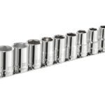 This Britool Socket Set comprises 10 metric sockets, supplied on a rail. The sockets are made if chrome vanadium steel and have a high chrome finish. They have OGV® profiles, meaning that tightening torque is applied to the sides rather than to the angles of the nut.