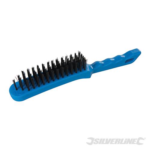 Heavy duty steel wire brush with stay-clean, tough plastic handles. Bristle length 25mm. Length 280mm.