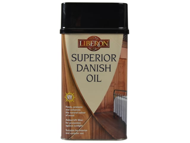 Liberon Superior Danish Oil is a blend of pure tung oil and natural oils which feeds and protects hard and soft woods. It is a penetrating oil, which brings out the natural grain of the timber and provides a satin to gloss sheen. With added UV filters to help prevent discolouration from the sun, this oil is suitable for both interior and exterior use.