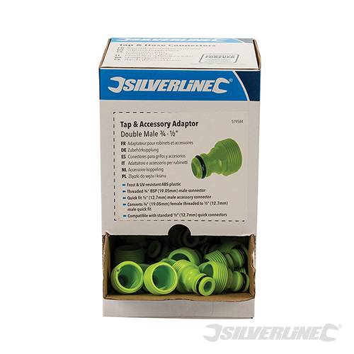 Tap & Accessory Adaptors 3/4 – 1/2″ Display Box 30pce – Double Male 579584