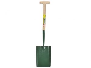 A solid forged, taper mouth shovel that is ideal for trench work, concrete mixing and general shovelling. It has an unvarnished hardwood handle with a metal YD hilt with a wooden cross dowel for added comfort.