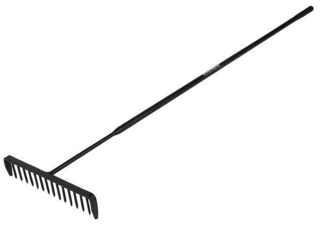 The Roughneck Tarmac Rake has an all steel construction with 16 welded round teeth. Its long tubular steel handle is fitted with a soft grip for increased comfort during prolonged use.