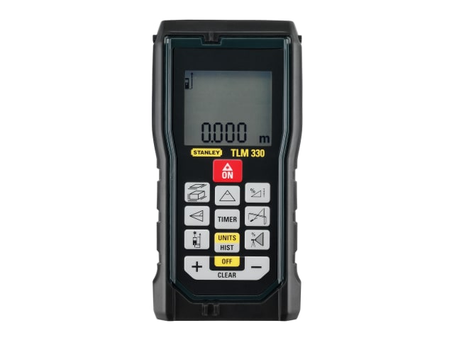 The Stanley Intelli Tools TLM 330 True Laser Measure allows for rapid and precise one person operation over long distances with easy to take measurements in busy or out-of-reach areas. It can measure length, area and volume up to 100m. Also has a Pythagoras function for remote measurement of high walls, Min./Max. tracking and trapezoid measurement for accurate layout.