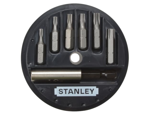 This 7 piece screwdriver bit set contains 6 x 25mm TORX bits and a magnetic holder.