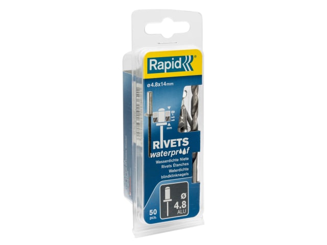 The Rapid waterproof rivets are ideal for use in humid areas. They are made from high grade aluminium and the head of the rivet is made of 1 single part to prevent leakage between the 2 parts when they are fixed together.
