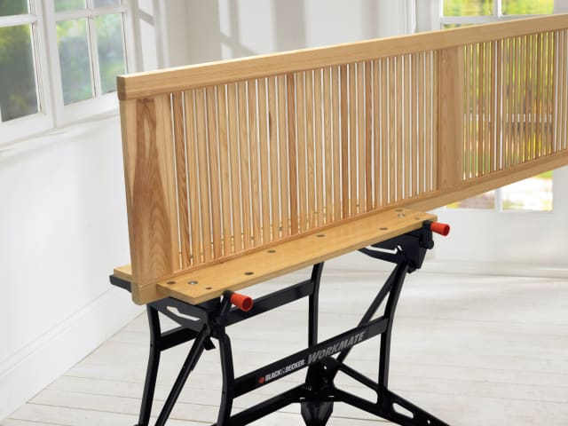 The Black & Decker WM626 Tough Dual Height Workmate can be used as a workbench, bench tool stand, vice, or sawhorse. With a durable steel frame construction that folds flat for compact storage and easy transport. Dual clamping cranks increase clamping force and versatility.
