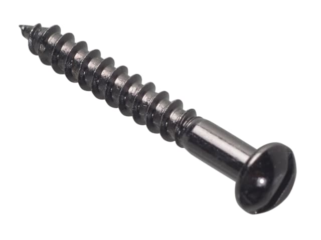 These ForgeFix traditional slotted round head Wood Screws have a Black Japanned finish, and are used in many decorative and ironmongery applications.