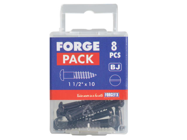 Wood Screw Slotted Round Head ST Black Japanned 1.1/2in x 10 Forge Pack 8