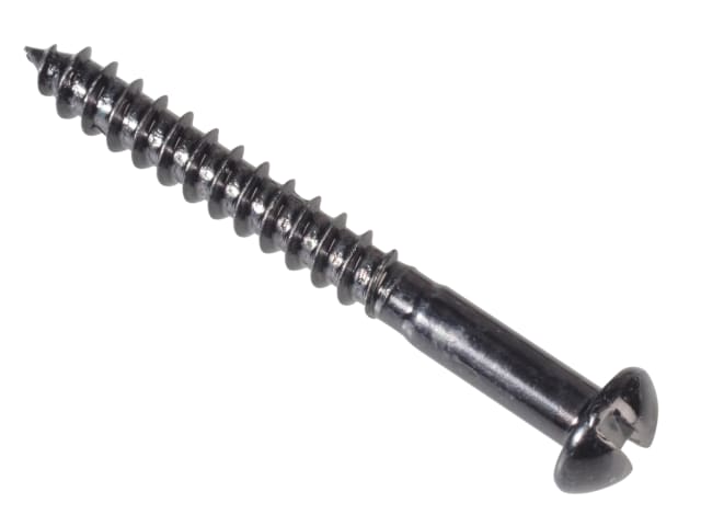 These ForgeFix traditional slotted round head Wood Screws have a Black Japanned finish, and are used in many decorative and ironmongery applications.